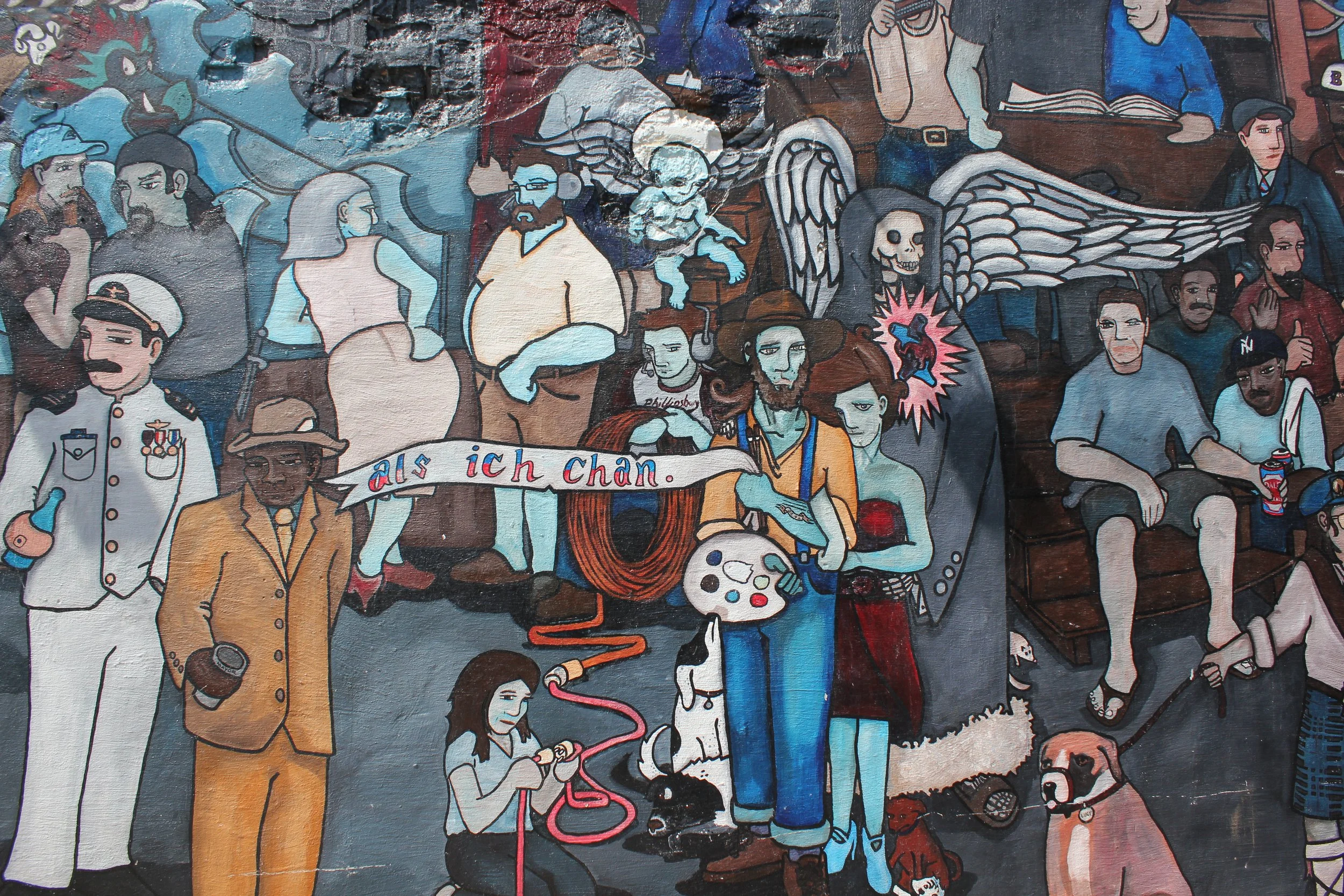 Als Ich Chan – which translates as “the best I am capable of doing” is a title that plays on Jan Van Eyck’s famous painting The Man in the Red Turban which featured the same quote. The mural itself features 274 members of the Charlotte community and serves as a vibrant time capsule capturing the renaissance of the NoDa Arts District. Inspired by Diego Rivera’s Dream of a Sunday Afternoon in Alameda Park, the composition weaves together past and present, showcasing the artists, musicians, business owners, and residents who have shaped NoDa into a cultural landmark.